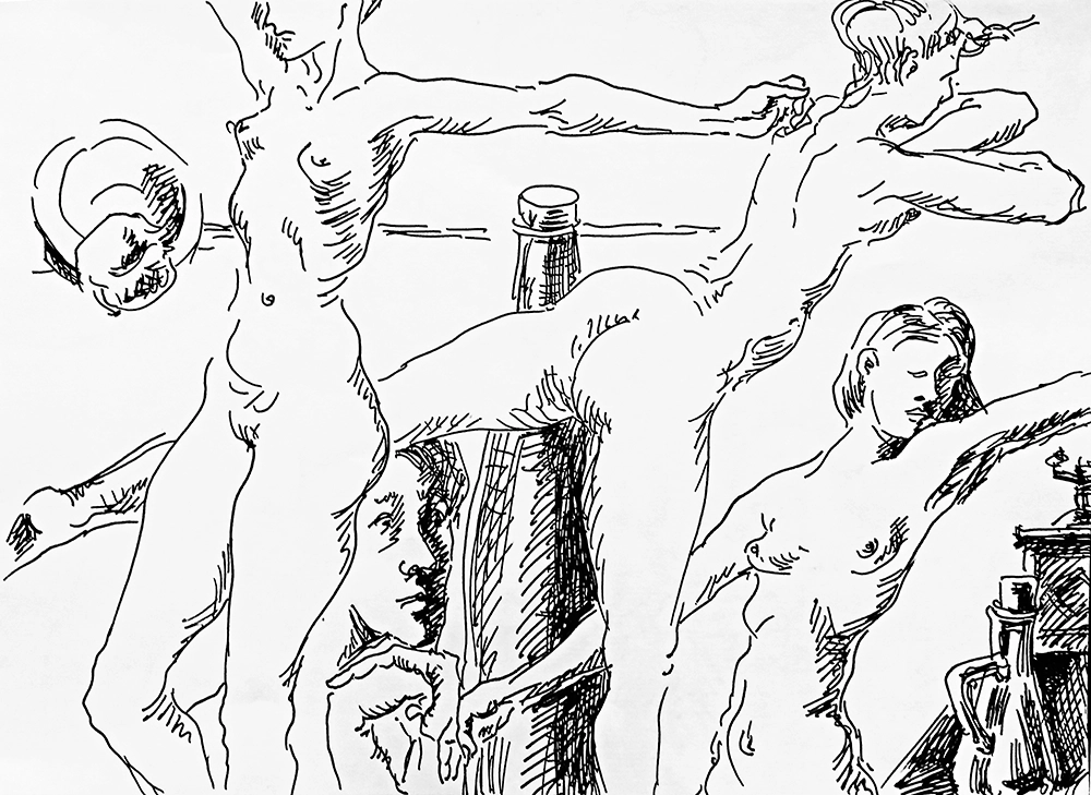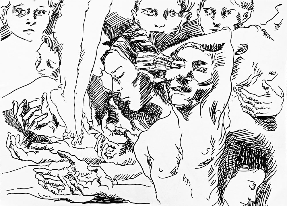 This sensibility is particularly evident in a series of works drawn on paper napkins, created spontaneously by the artist in cafés. These fragile surfaces carry gestures, observations, and impulses that emerge between conversations, pauses, and moments of waiting. The delicacy of the material intensifies their meaning: they become quiet records of time that do not seek permanence but simply exist within the flow of everyday life.