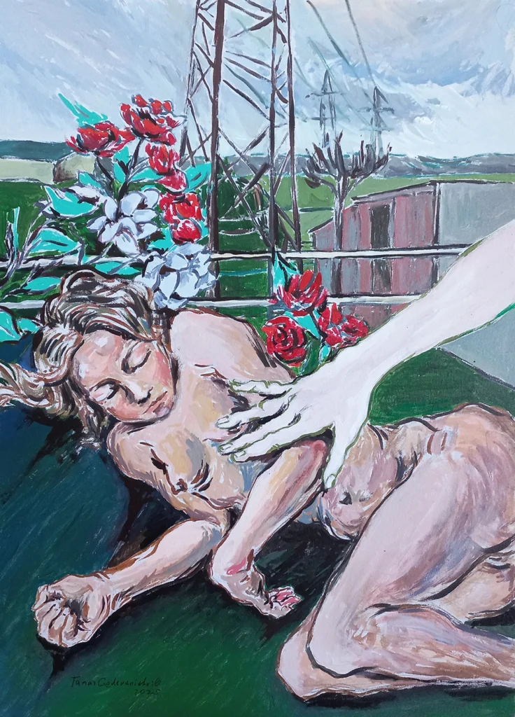 Gedevanishvili studied at the Tbilisi State Academy of Arts, where she first graduated from the Faculty of Architecture and later continued her studies in Graphic Design. This interdisciplinary background informs her artistic language, where spatial thinking, narrative imagery, and emotional intensity intersect.